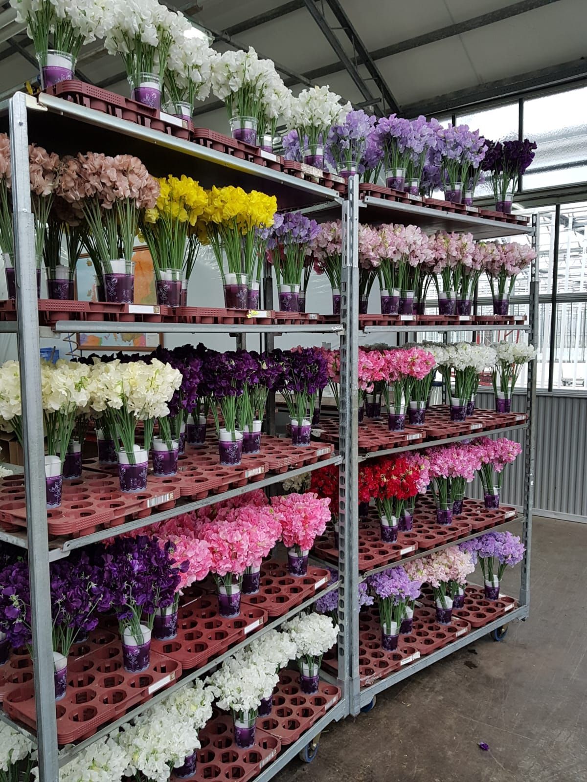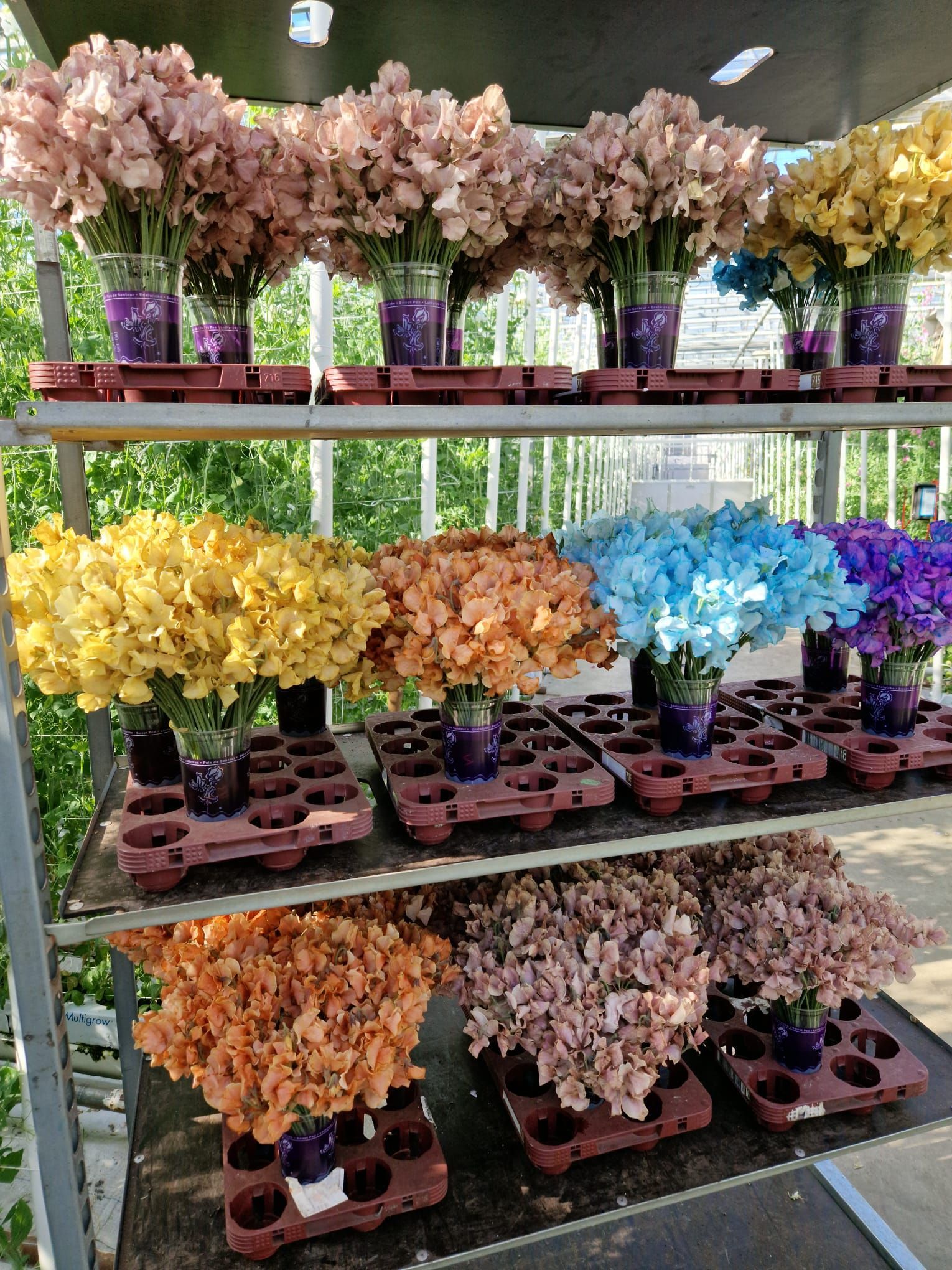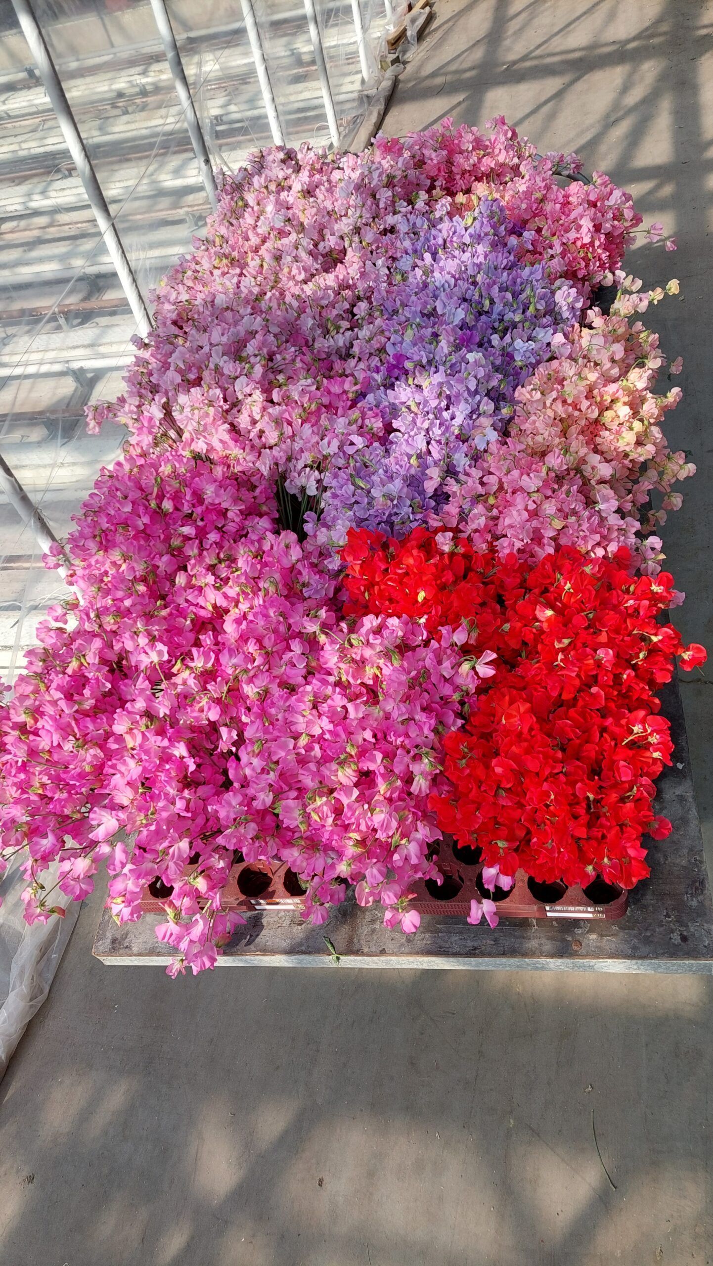 Het proces begint met het zaaien van de zaden in bakjes. Na ongeveer twee weken worden de jonge planten uitgeplant in de kas. Zo’n tien weken later verschijnen de eerste bloemen en start de oogst. Vanwege de hoge energieprijzen wordt lathyrus momenteel niet jaarrond geteeld. Het seizoen loopt van begin maart tot half december. De piek ligt in april, mei en juni, wanneer de productie kan oplopen tot wel 500.000 bloemen per week. Na de oogst krijgen de bloemen een speciale behandeling die de houdbaarheid aanzienlijk verlengt, een belangrijk aspect voor ons als groothandel én voor u als bloemist.