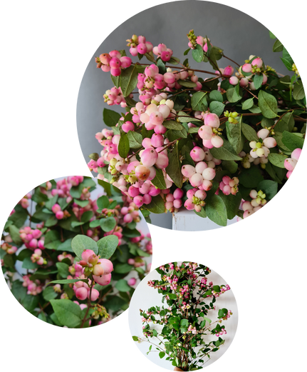 Symphoricarpos is een geslacht dat zijn oorsprong heeft in Noord-Amerika. In de tuin wordt hij vaak sneeuwbes genoemd: een struik die in het najaar volhangt met witte of roze bessen. Voor de snijbloemenmarkt worden de takken op het juiste moment gesneden, zodat de bessen stevig, glanzend en fris van kleur zijn.